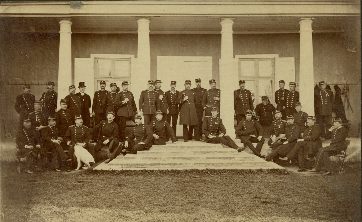 Grupporträtt av officerare och soldater vid Västgöta regemente I 6, 1884.