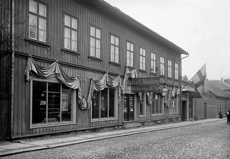 Fest i Missionsförsamlingen 1905? Gardiner sattes då upp i de skolsalar som användes. Innan Missionskyrkan byggdes 1912 samlades man i övre skolhuset.