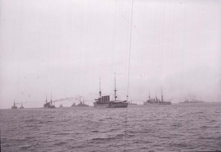 Enligt text som medföljde bilden: "Engelske eskaden Skagern 14/7 08". ::