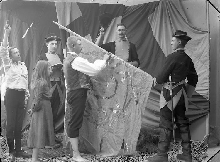 Enligt fotografens journal nr 1 19041908: "Tablå "Sista uppbådet", Stenungsund".