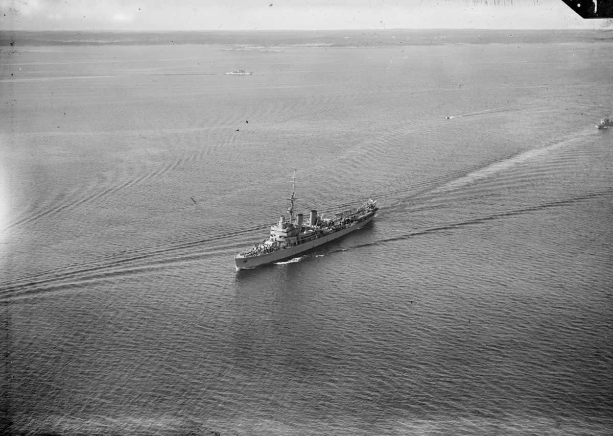 Fyra personer i arbete med rälsslip F 2 Roslagens flygflottilj, vintertid 1935. I bakgrunden syns fartyget HMS Göta samt tre militära flygplan, varav ett är av typen S 5.