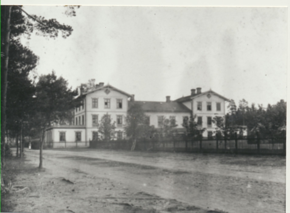 Karlsborg. Infanterivolontärskolan , senare rekrytskolan för infanteriets officers-och reservofficersaspiranter.Befälsbyggnaden fick förlängning på husets gavlar 1887. Den ena skulle bli matsal, den andra rum för offic