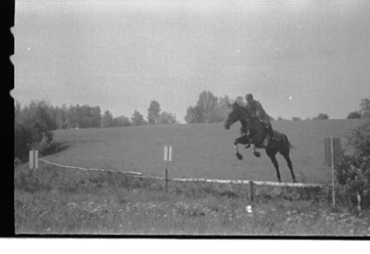 Militärbefälhavaren, general Folke Högberg med dotter Eva, åser kapplöpningarna 1948 på fältet söder K 3 kasern.
