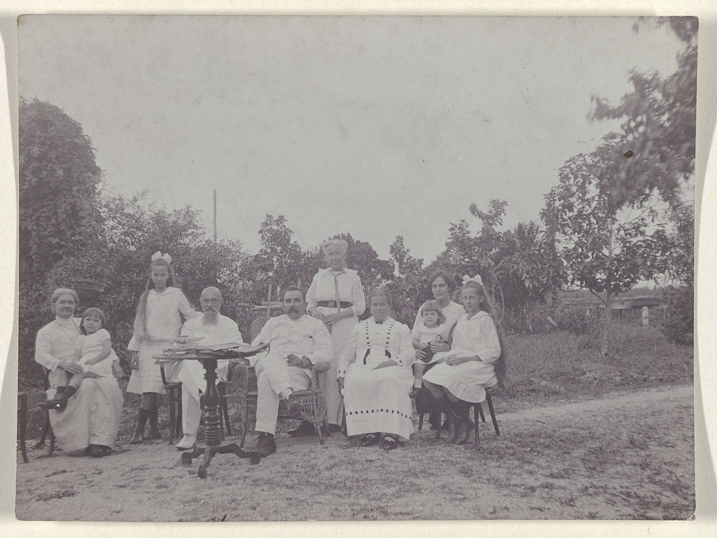 Twee vrouwen van de familie Van Ede boetserend in de buitenlucht in Nederlands-Indië