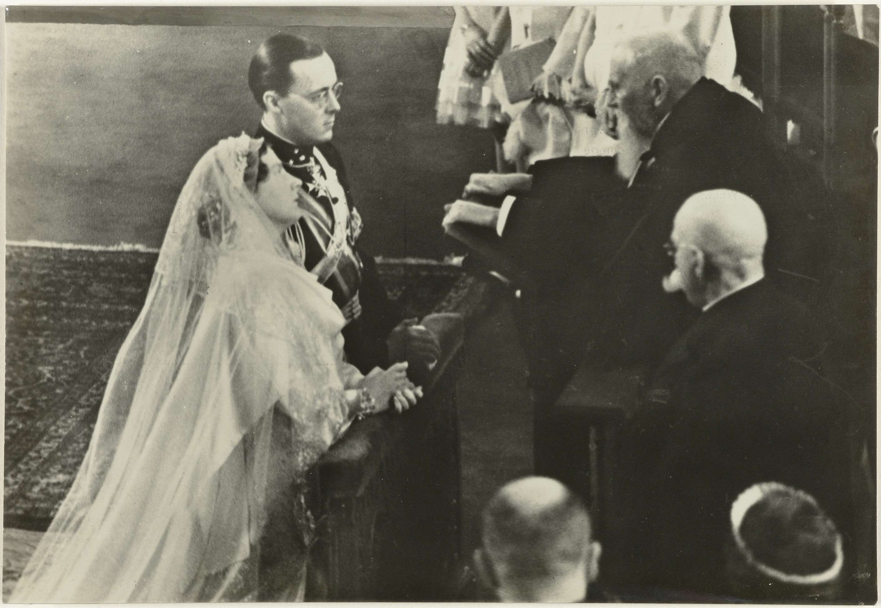 Huwelijk van Juliana, koningin der Nederlanden, en Bernhard van Lippe-Biesterfeld in de Grote Kerk te Den Haag op 7 januari 1937