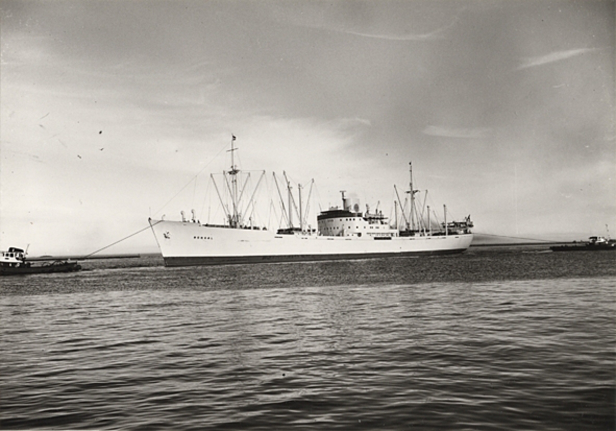 Foto i svartvitt visande lastmotorfartyget "BENGAL" i Köpenhamn den 2.4.1959.