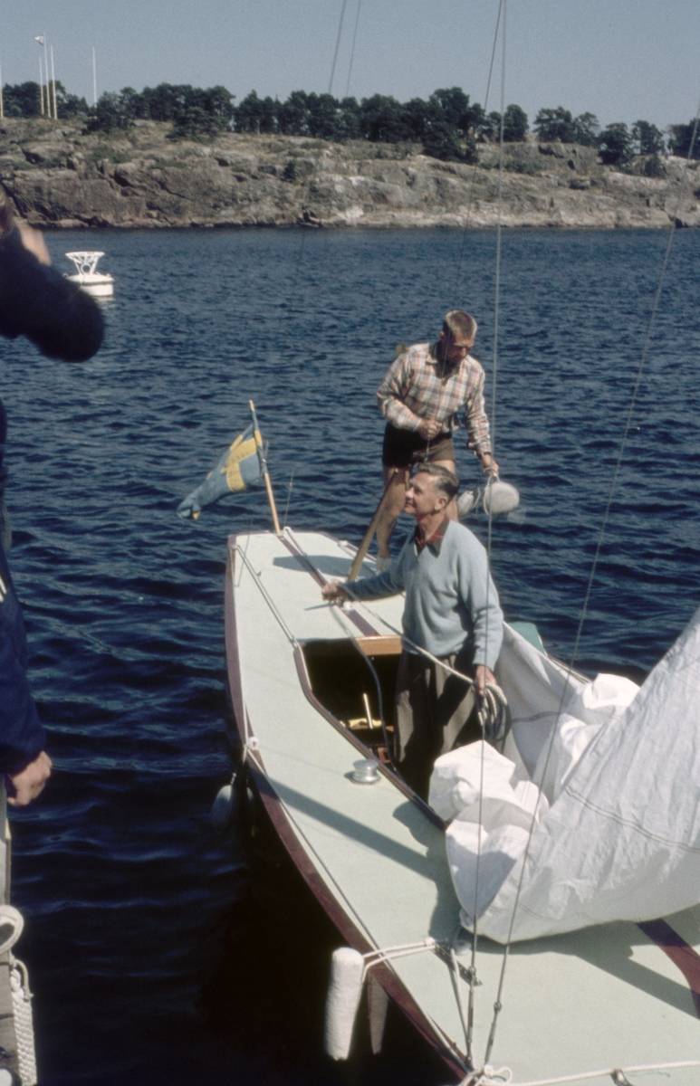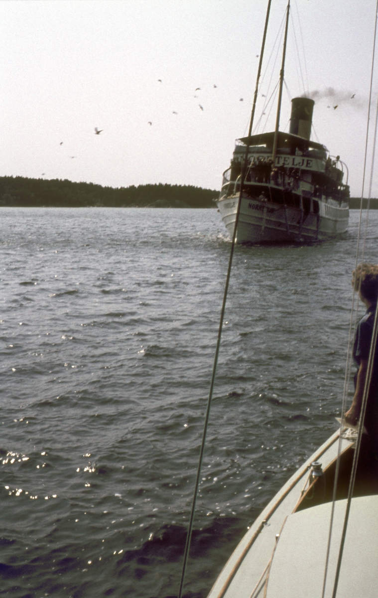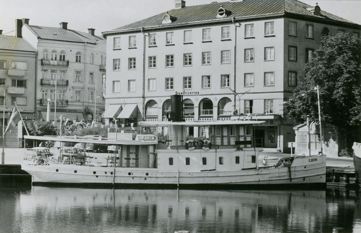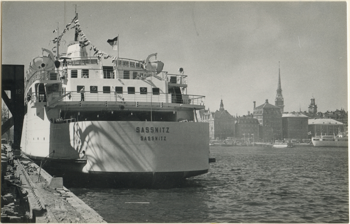 Foto från 1959 visande järnvägsfärjan Sassnitz från Öst Tyskland vid Skeppsbron, Stockholm.