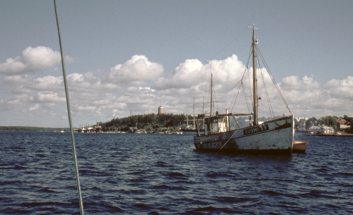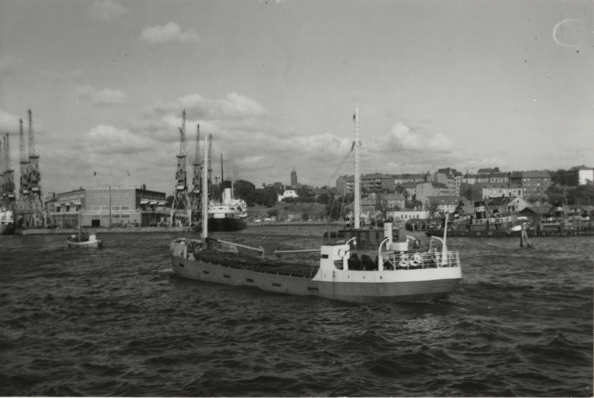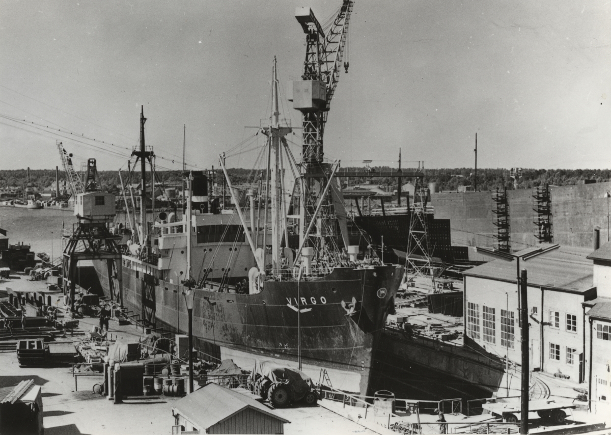 Oskarshamn. Lastångfartyget VIRGO av Stockholm vid varvet i maj - juni 1959.