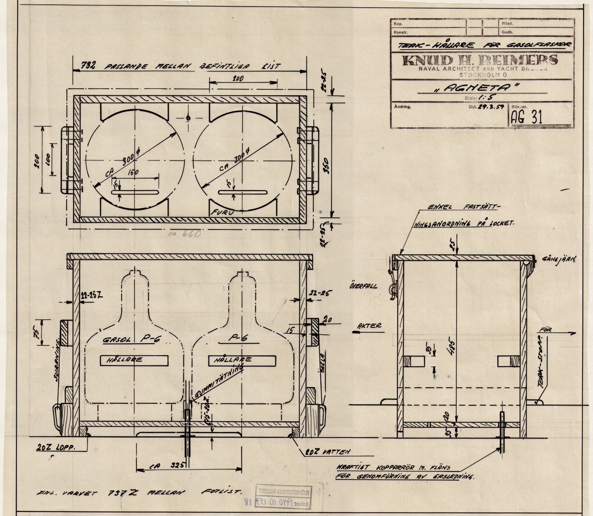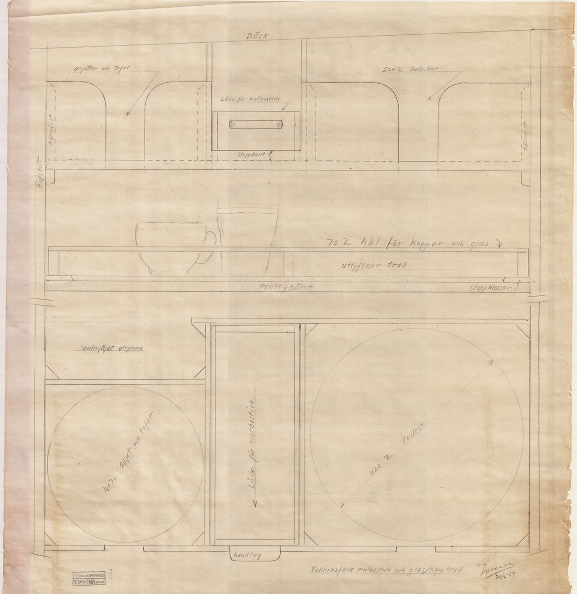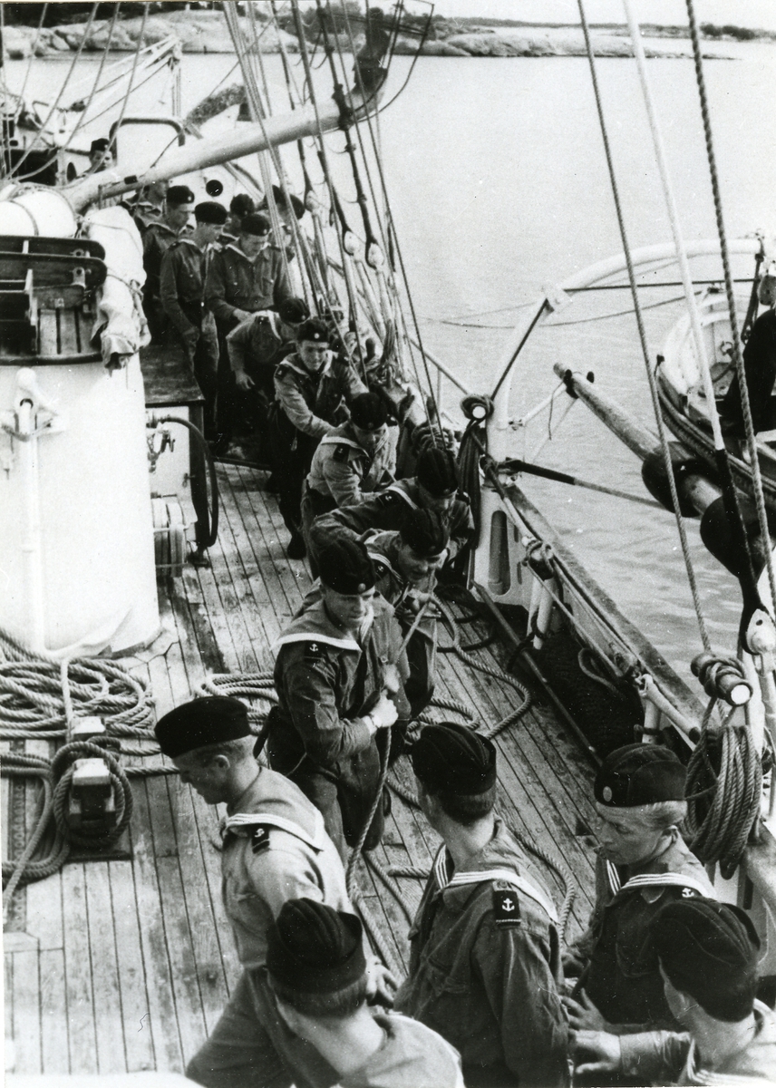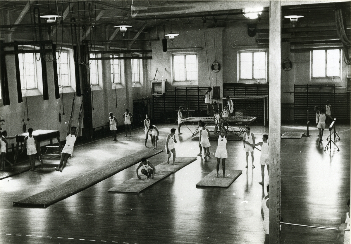 Interiör av af Trolles gymnastiksal vid Karlskrona örlogsbas 1959.