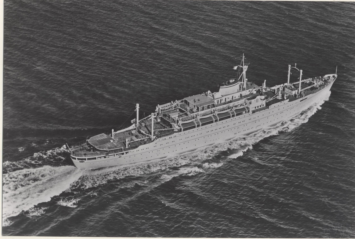 Foto från 1959 visande turist&passagerarmotorfartyg AFRIKA av Trieste under gång
