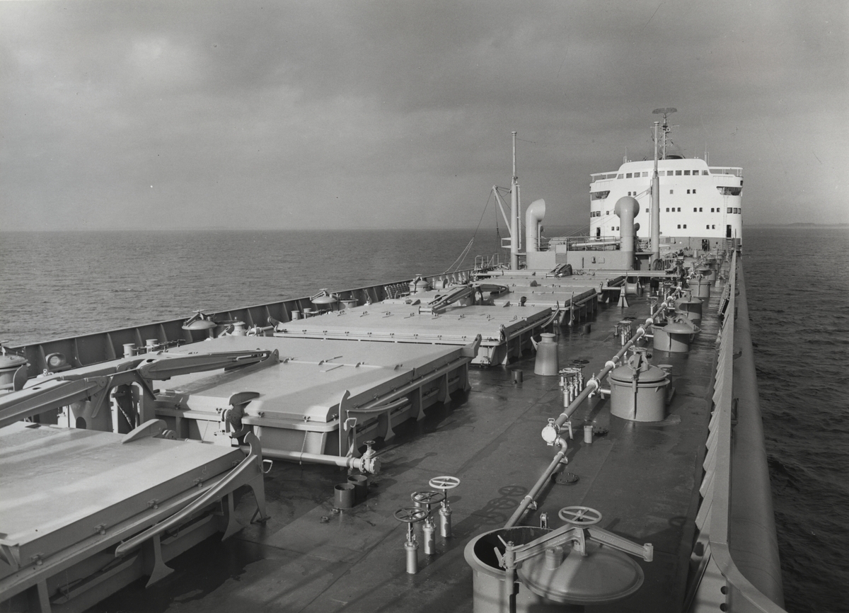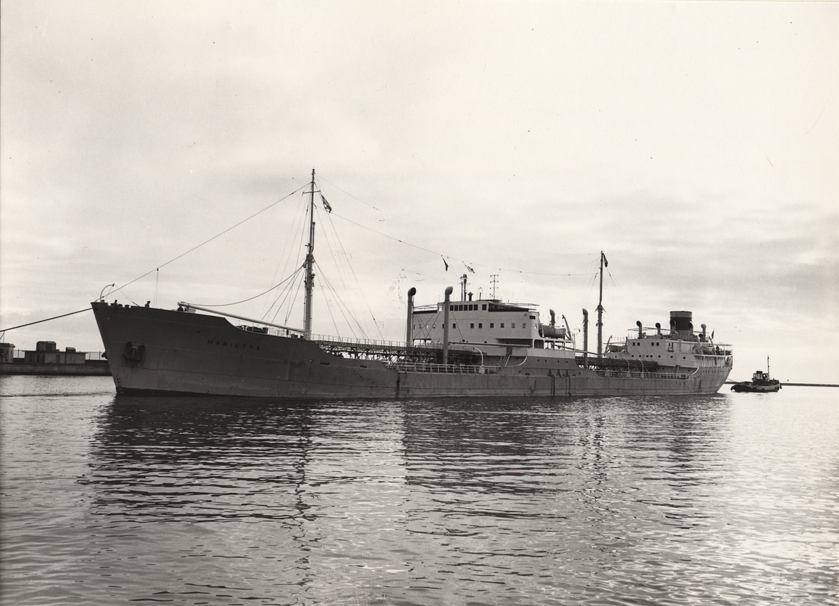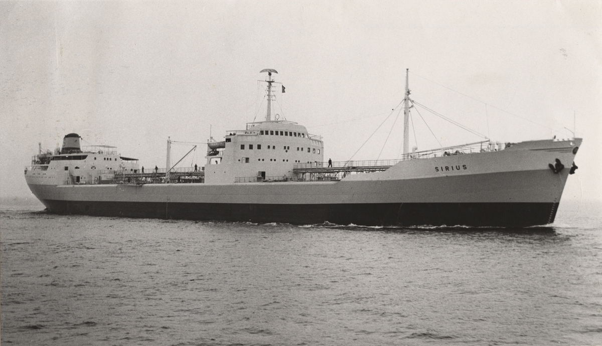 Foto i svartvitt visande tankmotorfartyget "SIRIUS" av Stockholm, troligen under provturen 1959-11-24.