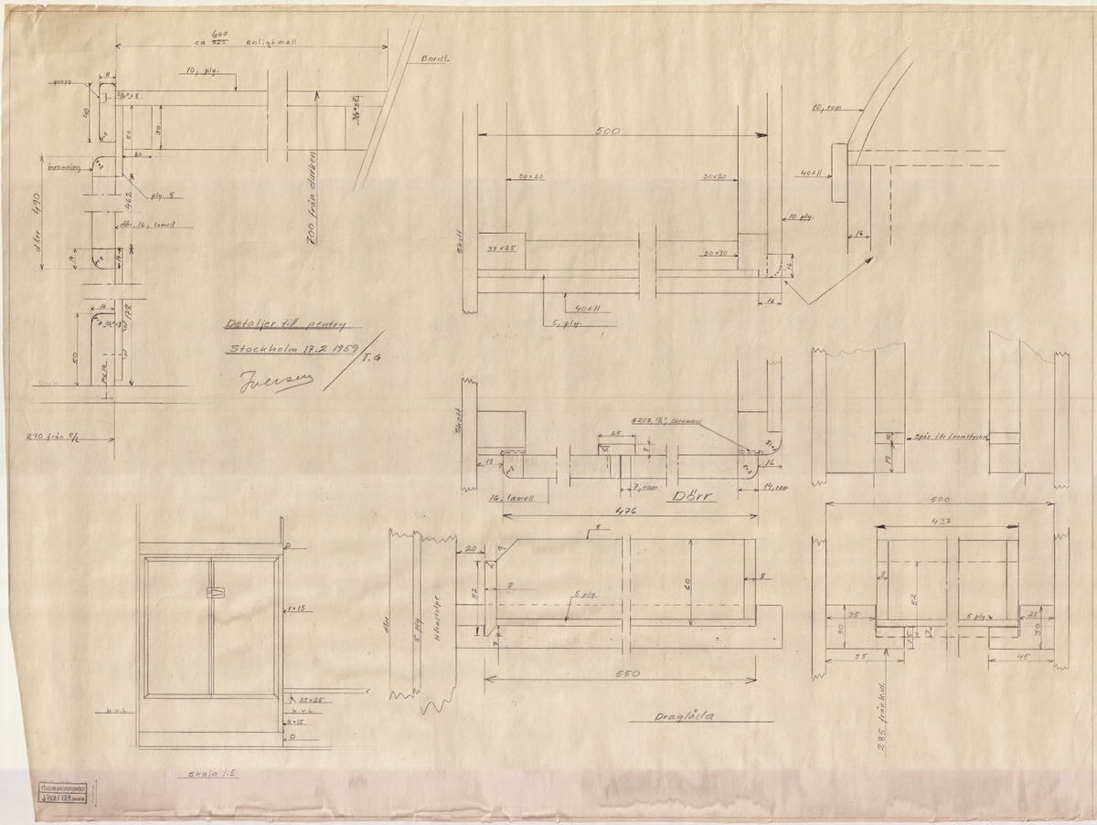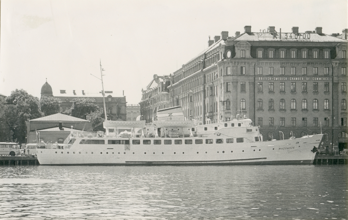 Foto från 1959 visande passagerarfartyg Mazowsze vid Nybrokajen i Stockholm