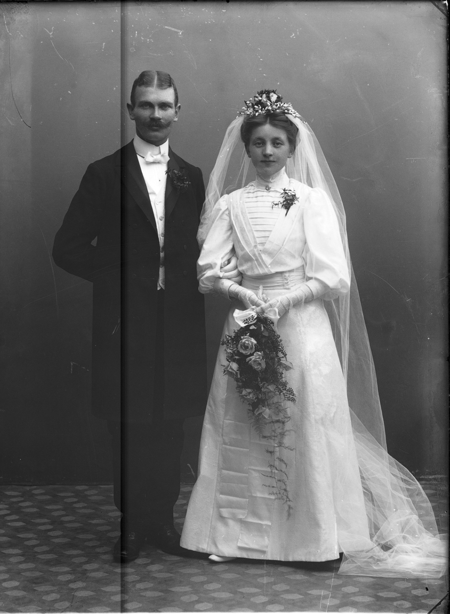 Hilda Jonsson (född Andersson), Bäve 1879-02-10, och Johan Jonsson, Hjärtum 1880-11-01, de gifte sig 20 sept. 1908.