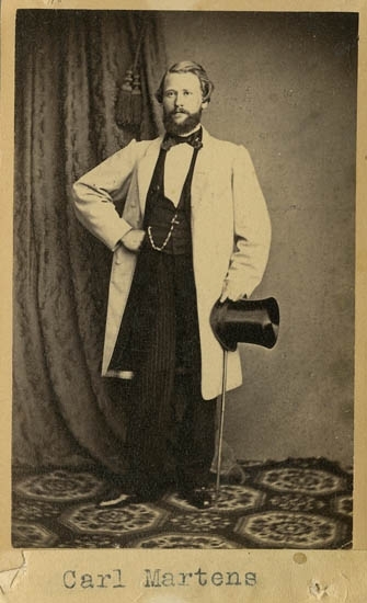 Text på kortets baksida: "Apoteksprovisor i Ua. Carl Martens. Son till Rektor i Ua Sven Rydén f. 1796 d. 1857 och hans hustru Inga. Kom till Australien".