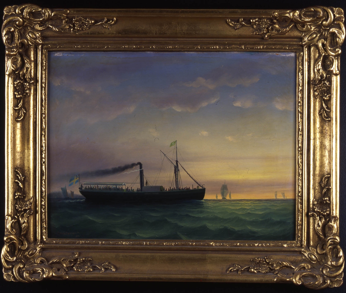 The steamship 'Persia' in a breeze. A portrait of the ‘Persia’ shown in broadside view, with the large paddle and funnels prominently displayed. The name of the ship is visible on the port bow, she flies the flag of the United States
