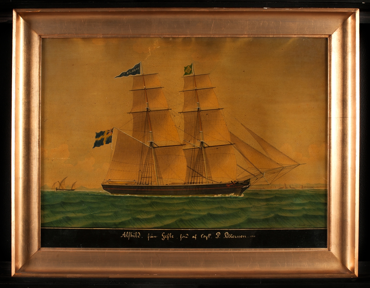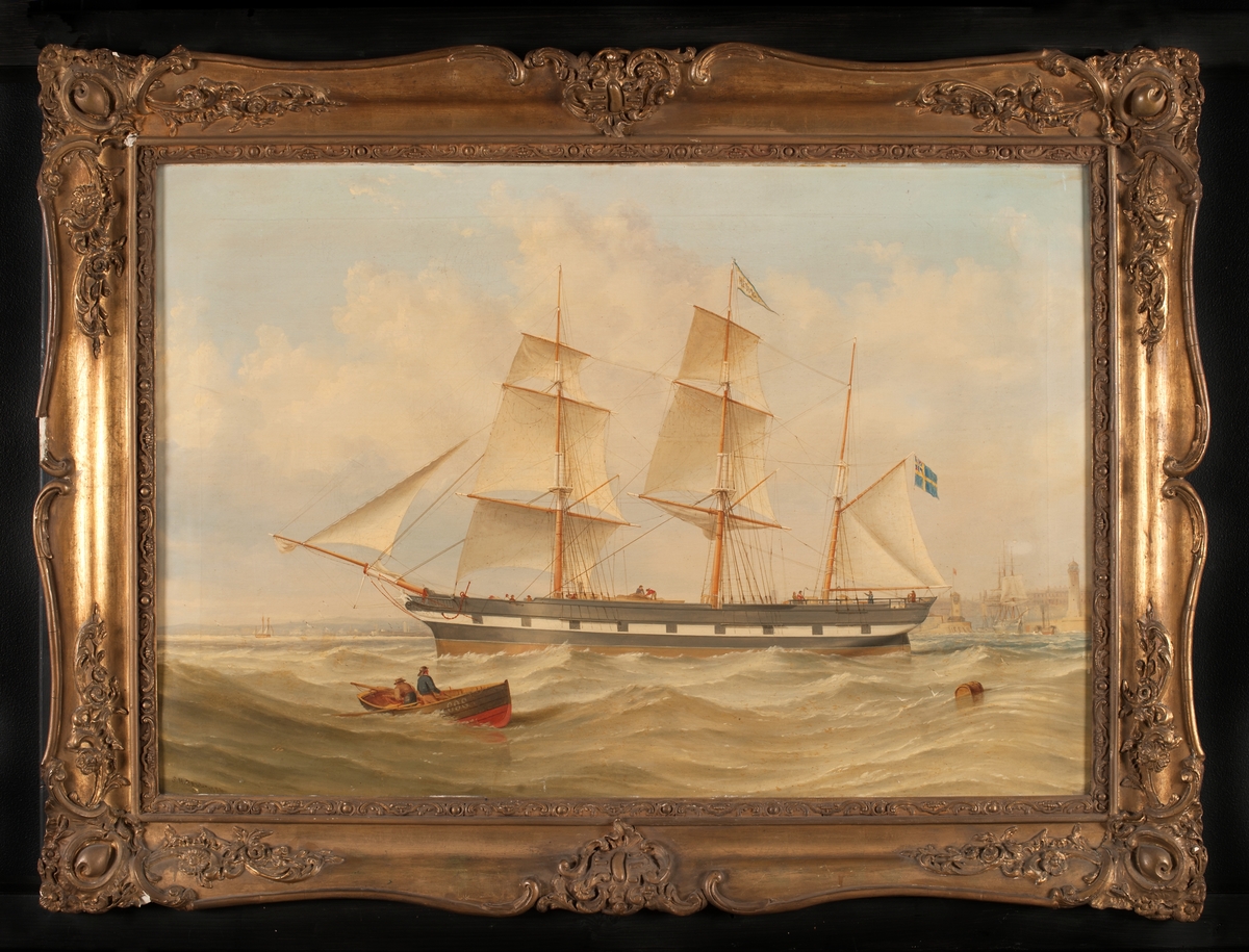 The barque 'Antagonist' entering the Elbe. A portrait showing the barque ‘Antagonist’. Built in 1854 she initially travelled between Plymouth, London and Madras and Batavia. She also went to the Baltic, Cronstadt and Germany, the sit