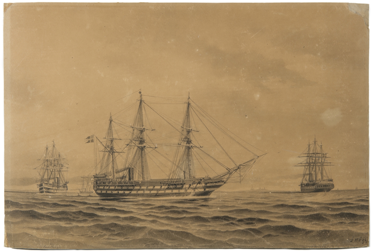 Icebergs off Cape Horn 1856 and showing HMS Tribune. Bound with PAG3512-PAG3545, PAG3547-PAG3625; with PAG3591, PAG3623 and PAG3624 loose from the album.; Medium includes bodycolour and graphite.