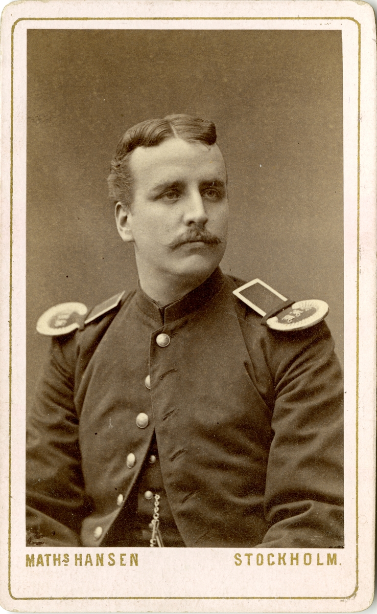 Porträtt av Hugo William Hamilton, underlöjtnant vid Svea livgardet I 1. Se även AMA.0007499.