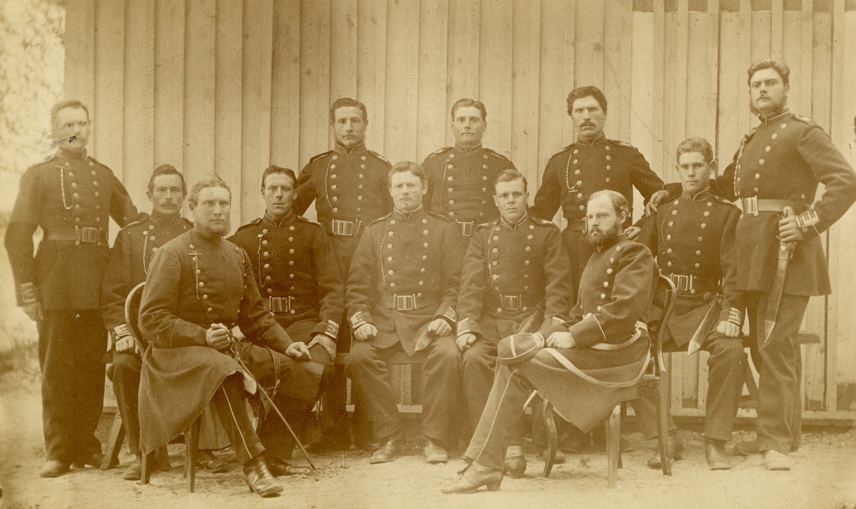 Grupporträtt av officerare från okänt kavalleriregemente, före 1878.