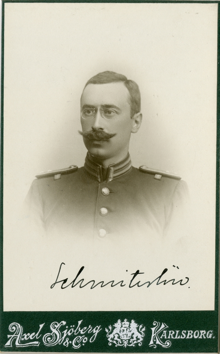 Porträtt av Samuel Axel Vilhelm Schmiterlöw, underlöjtnant vid Blekinge bataljon I 30.