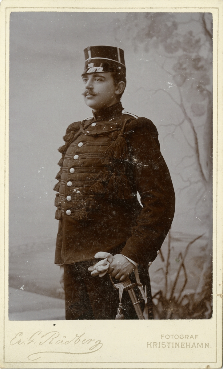 Porträtt av Broder Julius G:son Bergman, officersvolontär vid Livregementets husarer K 3.