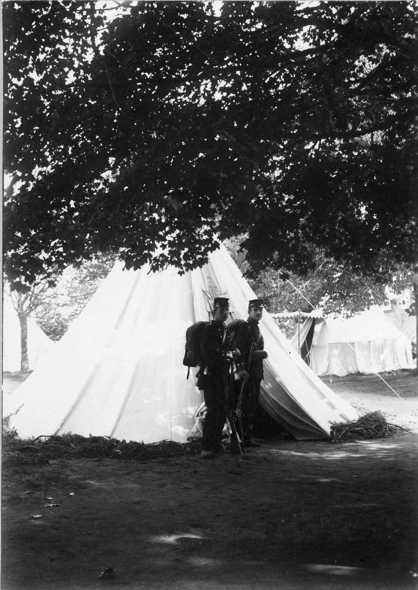 Carl Sandegren och Carl Benedicks framför tält på Polacksbacken, Uppsala 1896.