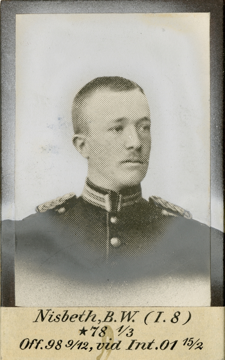 Porträtt av Bror Wilhelm Nisbeth, officer vid Uplands regemente I 8 och Intendenturkåren.