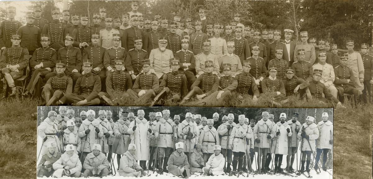Övrebilden, grupporträtt av Svea livgarde I 1 och Svea artilleriregemente A 1 med kronprins Gustaf Adolf.