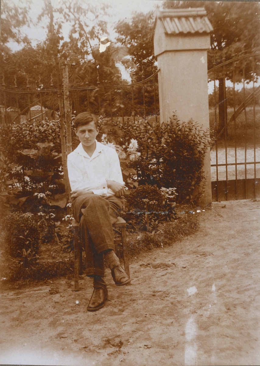Två soldat från Södra skånska infanteriregementet I 25 i en trädgård.