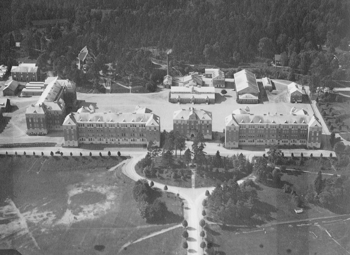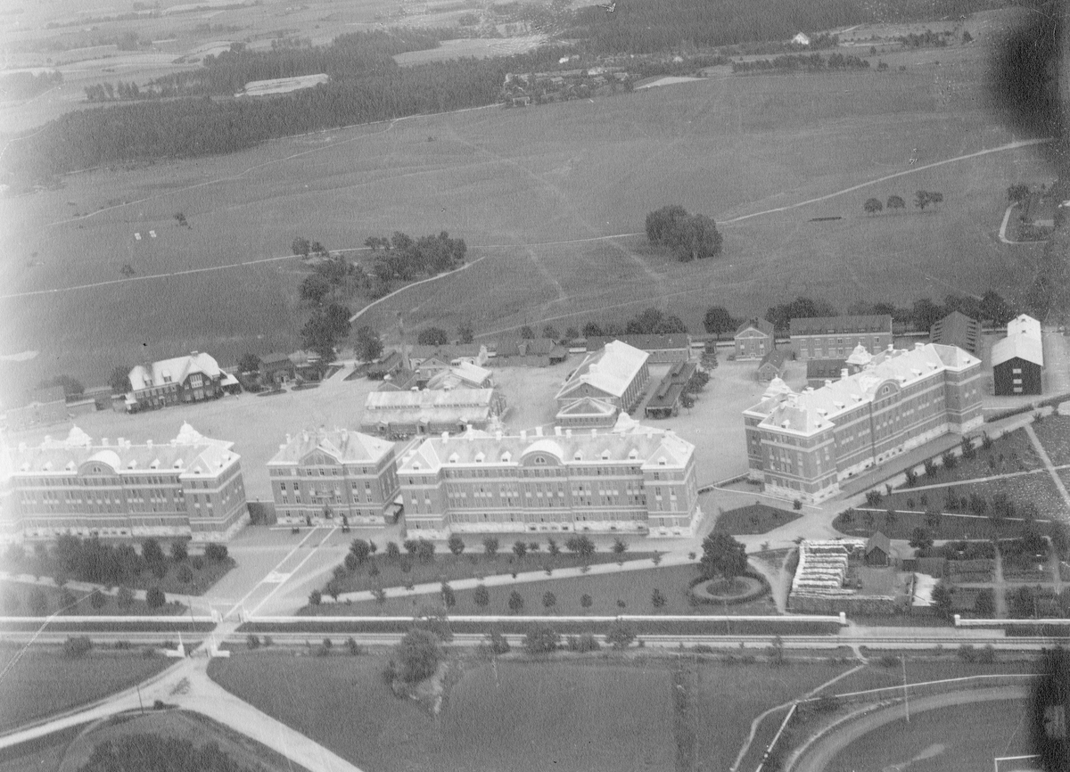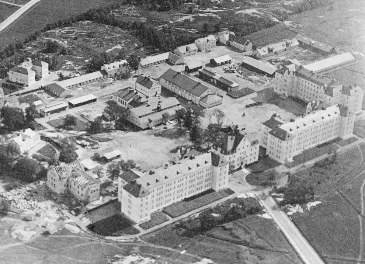 Flygfoto över Västgöta regemente I 6 kasernområde i Vänersborg.