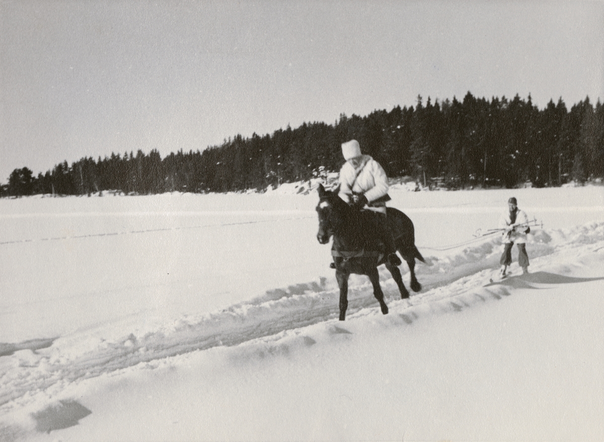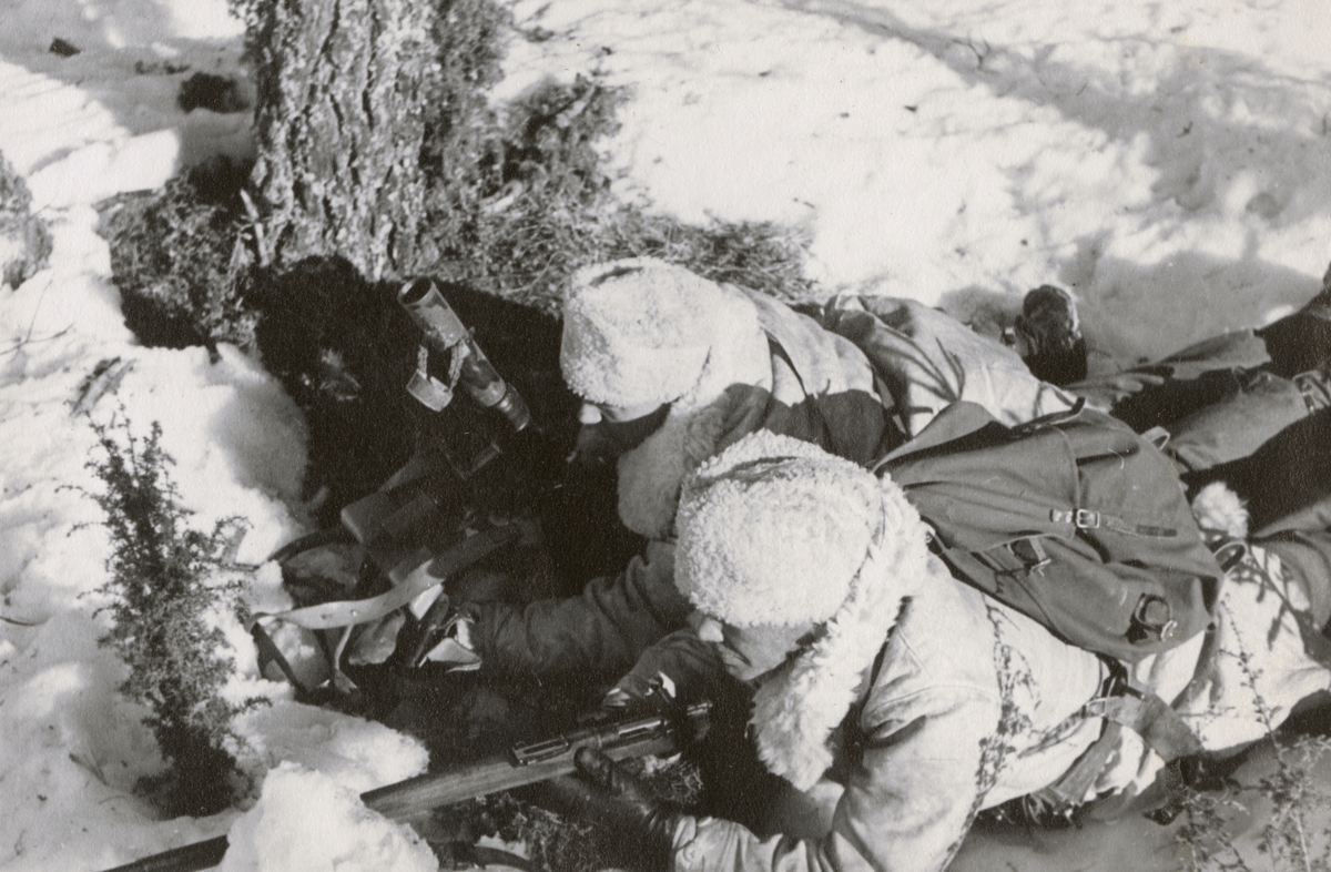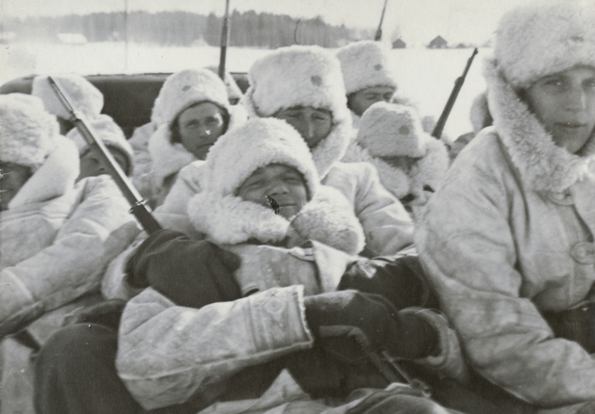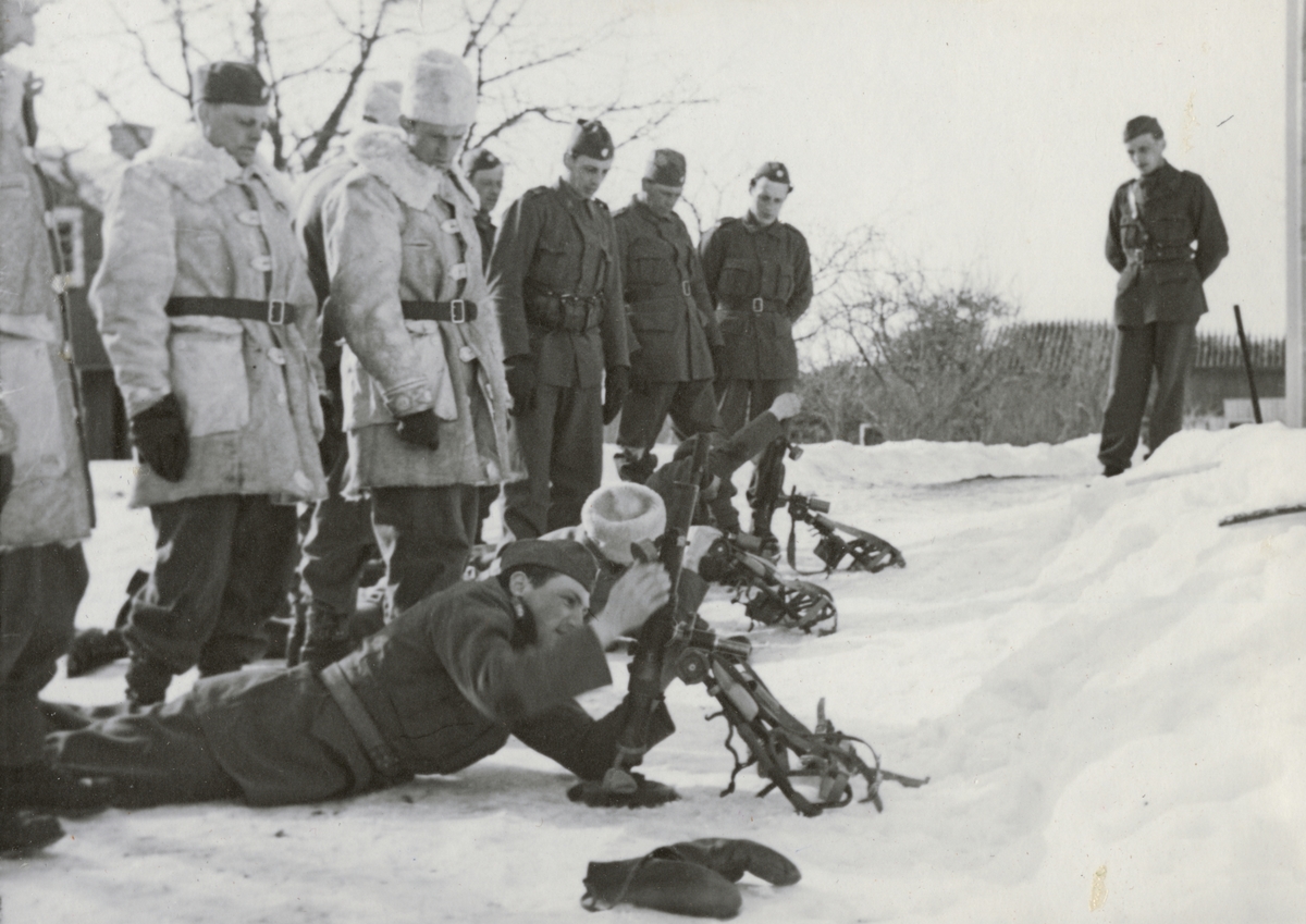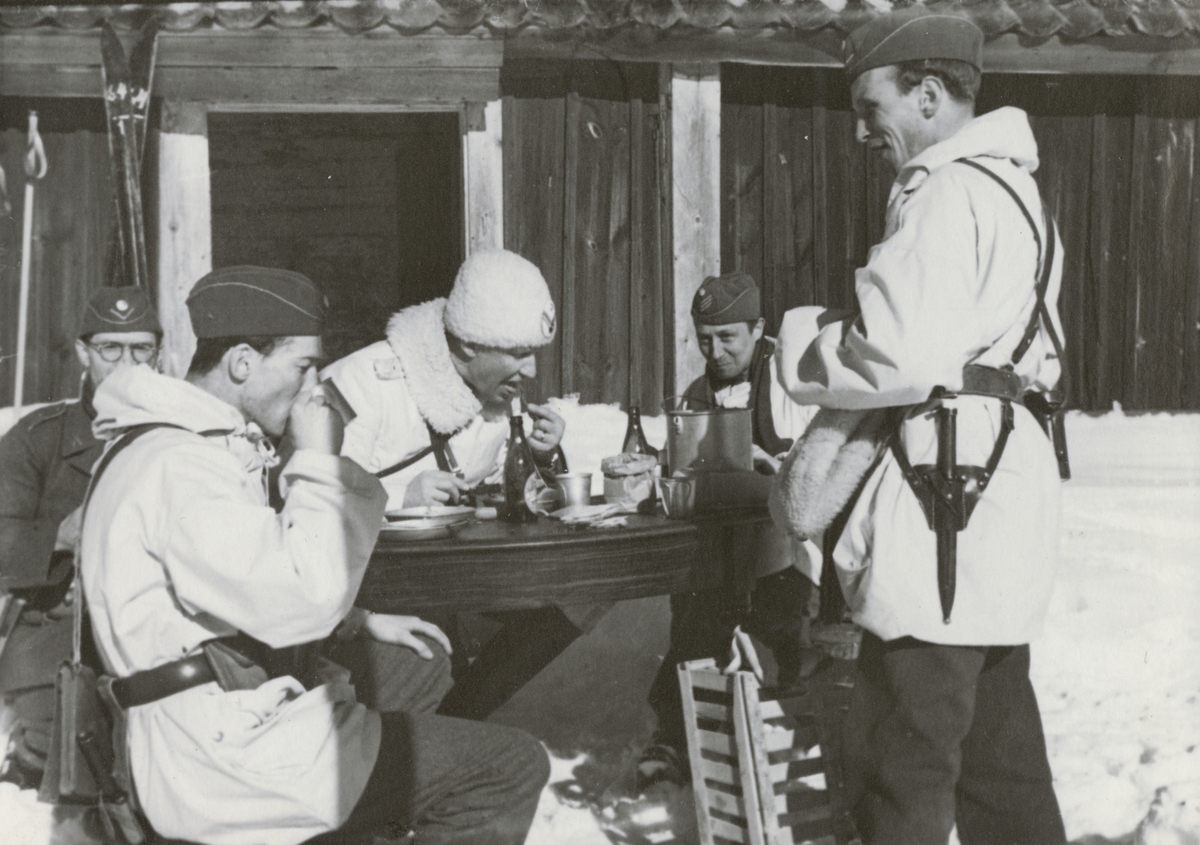 Soldater från Södermanlands regemente I 10 svalkar i snön efter bastubadet.