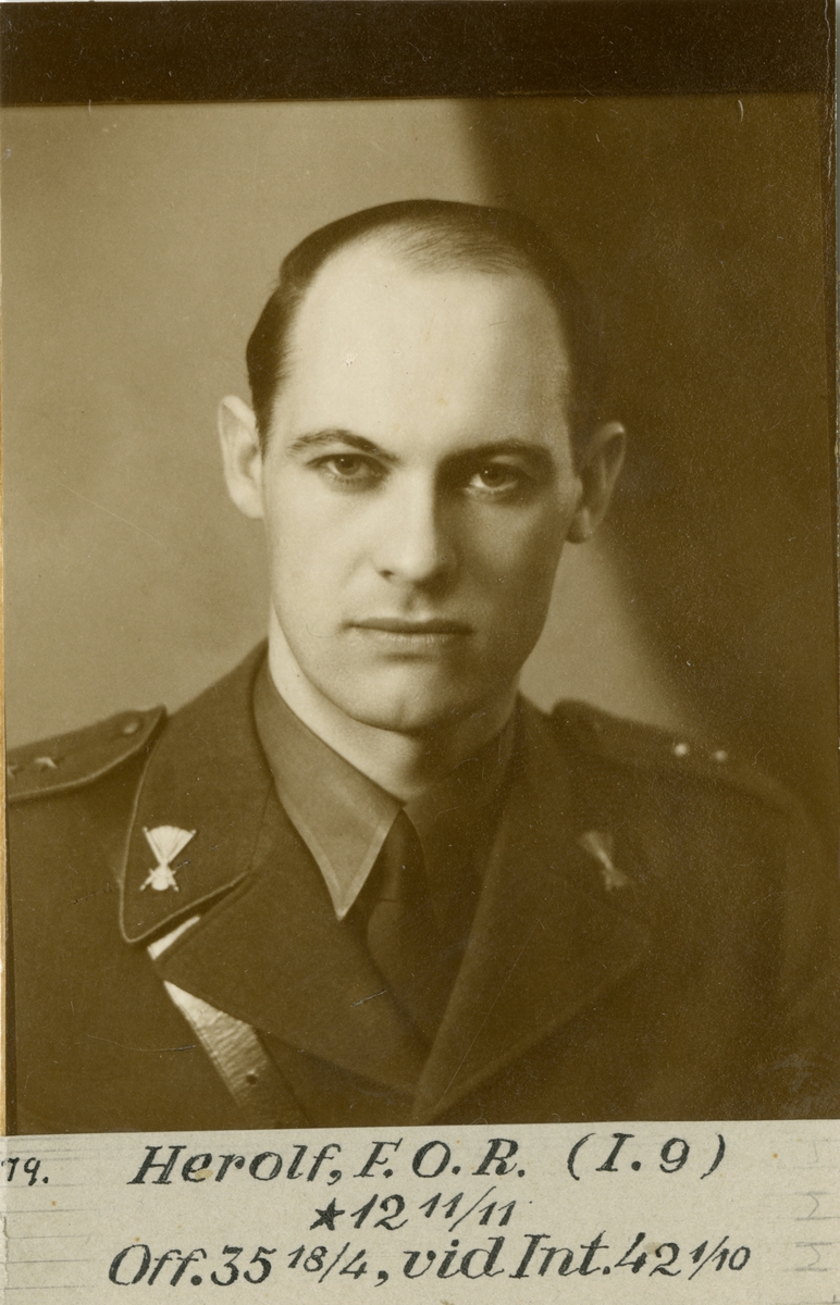 Porträtt av Folke Olof Ragnar Herolf, officer vid Skaraborgs regemente I 9 och Intendenturkåren.