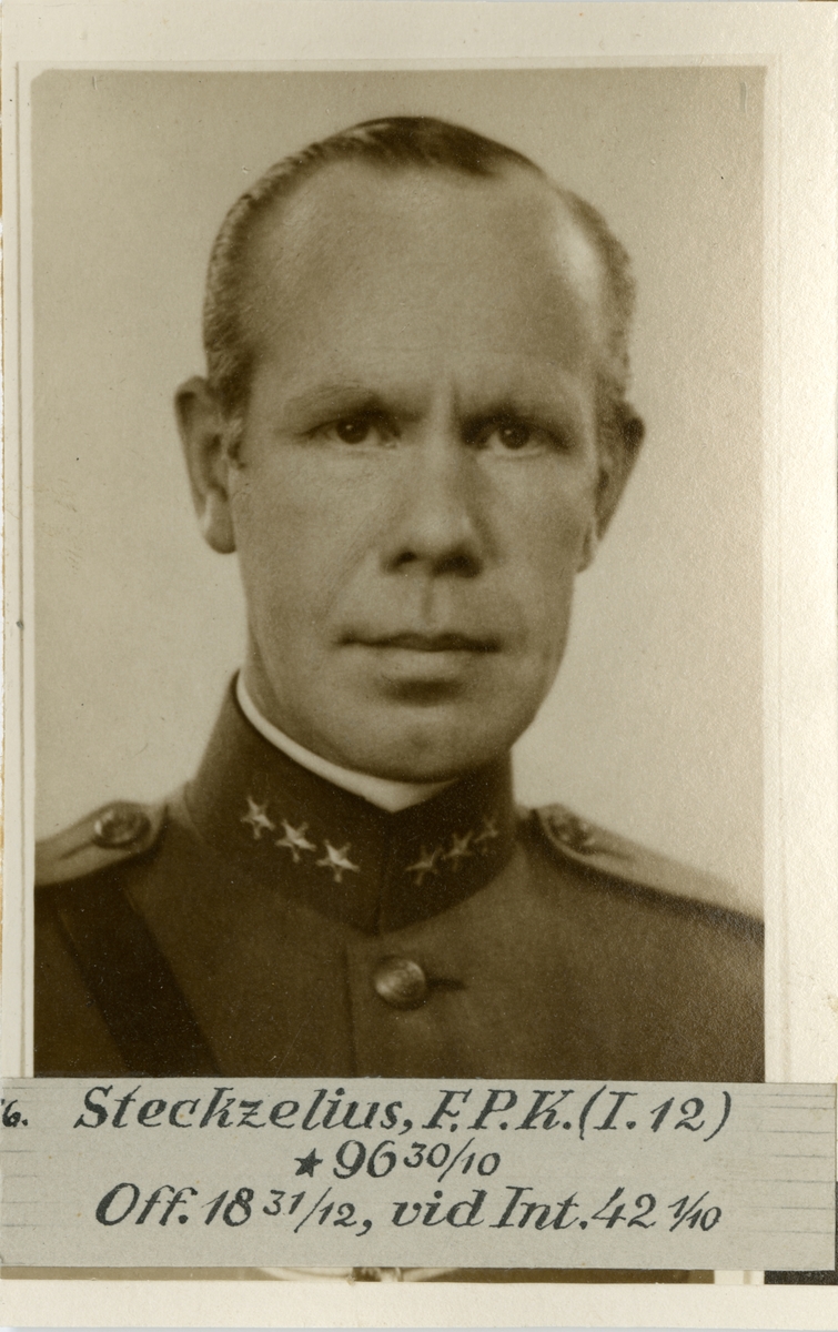 Porträtt av Fredrik Per Krisstian Steckzelius, officer vid Jämtlands fältjägarregemente I 5 och Intendenturkåren.
