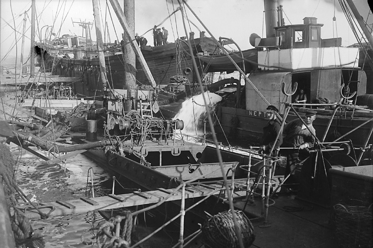 S/S "Ekliptikas" bärgning. Efter avslutad bärgning har man lagt fartyget i docka.
