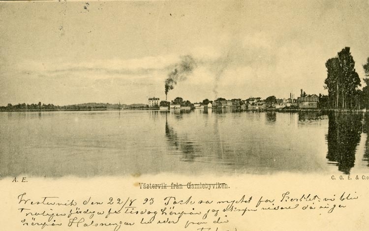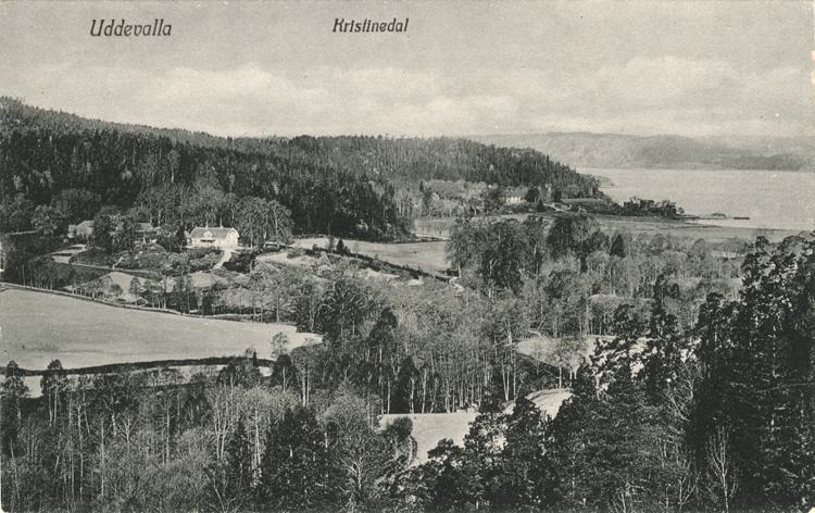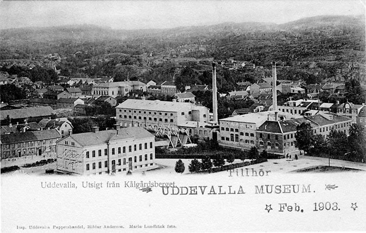 Tryckt text på vykortets framsida: "Uddevalla, Utsigt från Kålgårdsberget."