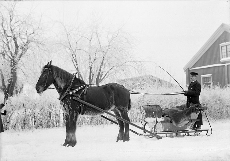 Enligt senare noteringar: "Förspänd släde med kusk. Vinterbild, troligen från Kasen."