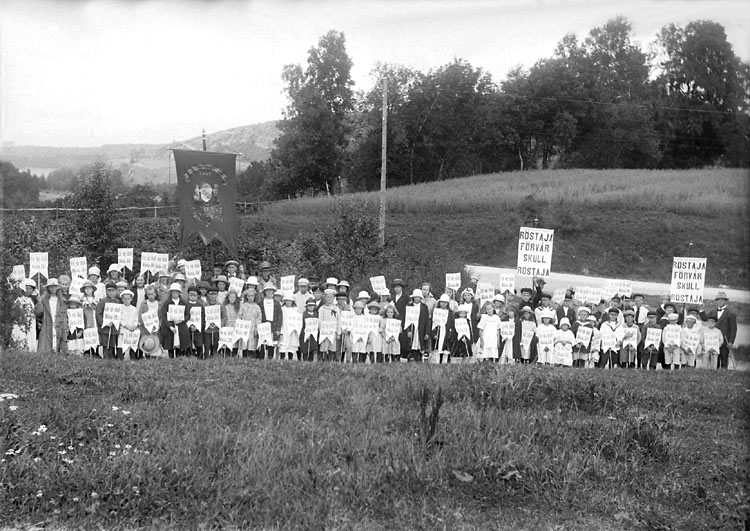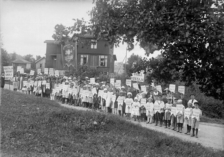 Enligt text som medföljde bilden: "Barnståg Totalförbudsdemonstration den 27/7 22. Gevaertplåt: framkallad med gammal Glycin. 4/7 23."