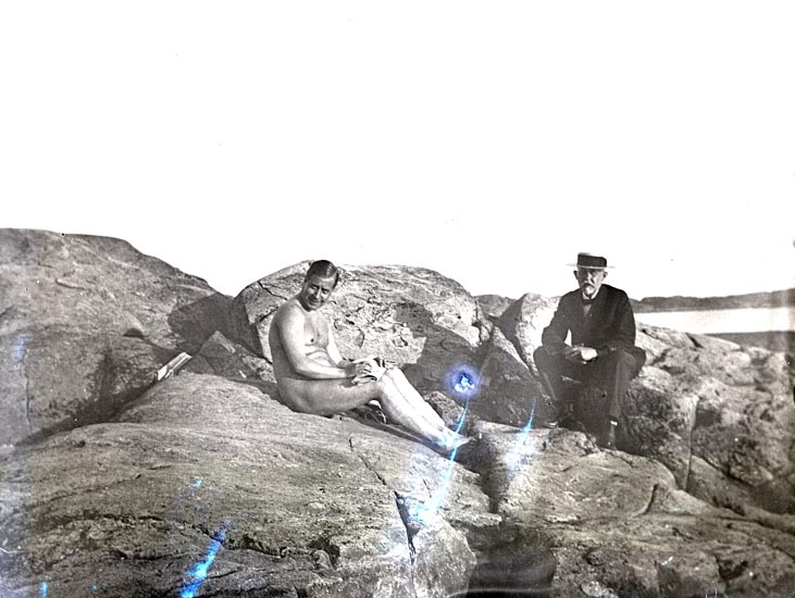 Utsikten över bassängerna,"Baidara" och "Malepert", samt Disponent Olsson och Pappa vid badplatsen. I slutet av September 1922.