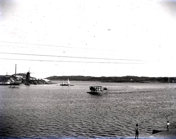 Färjan och en flygmaskin i hamnen.Tagna den 1819 Juli 1922. 4 st. Kopierade.