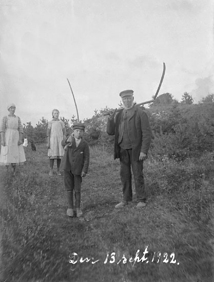 Enligt noteringar: "Till skördearbetet 13 sept 1922. Klara, Lisa, Gösta och Johannes A."