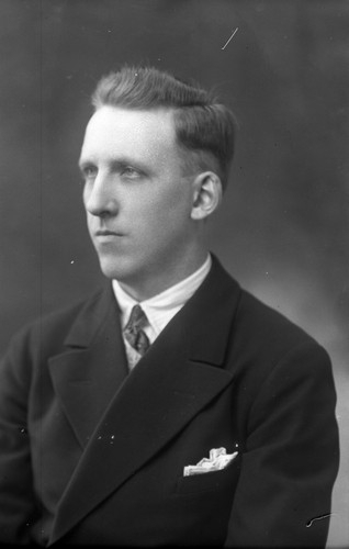 Ateljefoto. Algot Karlsson, Torp Munkedal den 12 februari 1933. OFnr: 16-a-33. Algot var under många år anställd på Torps gård. De sista åren på Munkedals bruk. Aktiv i Håby SSU.