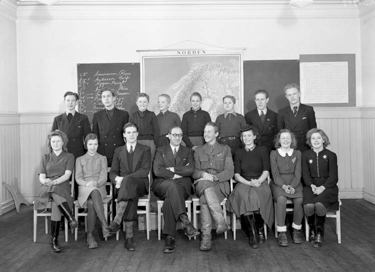Uppgift enligt fotografen: "Uddevalla. Realskolan. Grupp. Fältpostadoptering?"