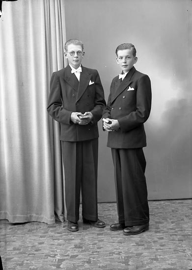Enligt fotografens journal nr 7 19441950: "Olsson, Clas o Karl Gerhard Kyrkenorum".