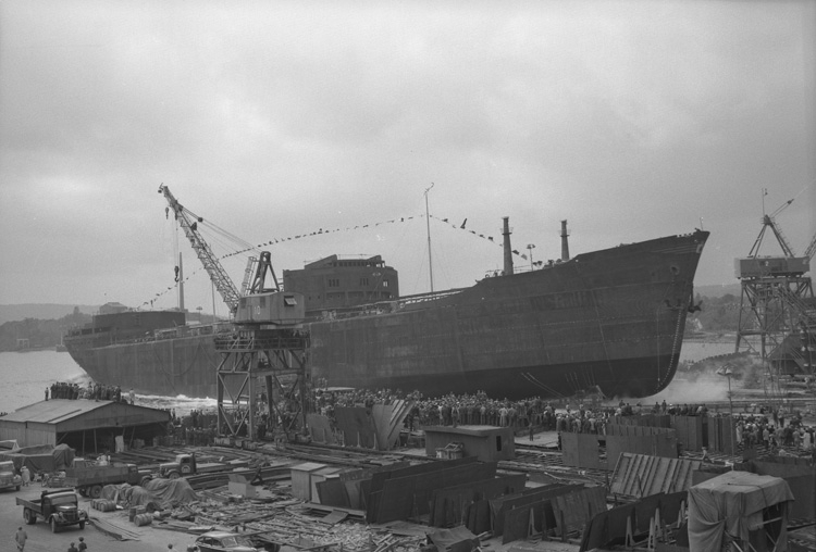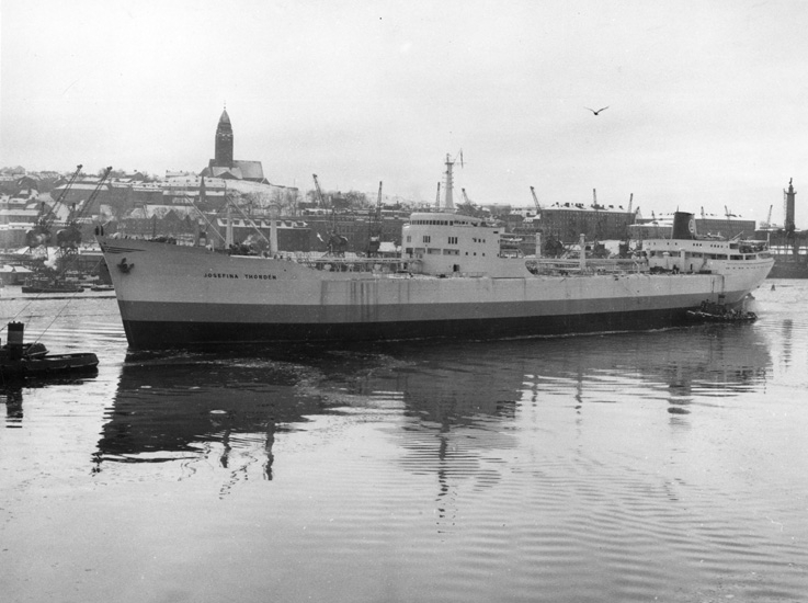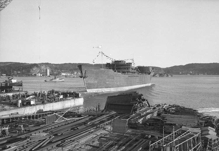 Dop och sjösättning av fartyget 133 T/T Josefina Thordén. Det var Sveriges första stora tanker.