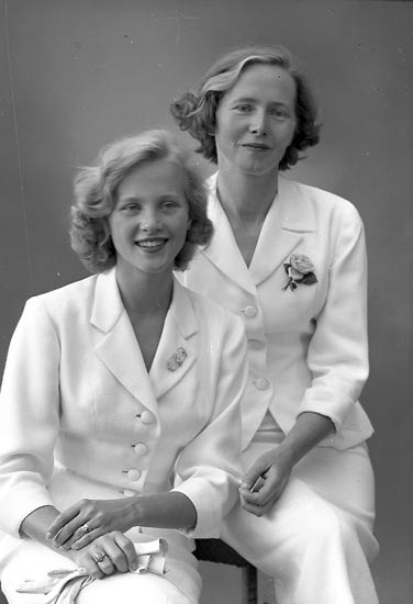 Enligt fotografens journal nr 8 19511957: "Pettersson Fru Ingrid med dotter, Box 638 Heby".