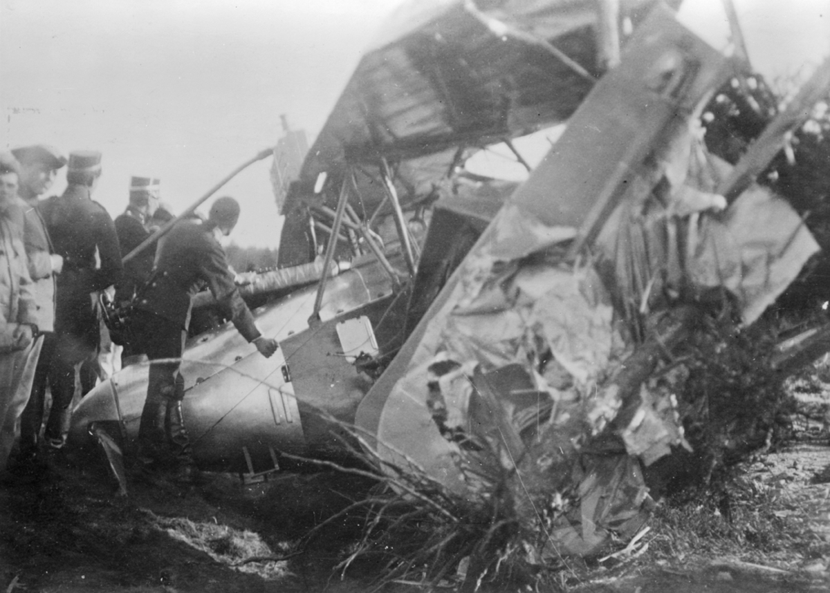 Haveri. En folksamling kring resterna av ett havererat flygplan på Malmen, 1919.