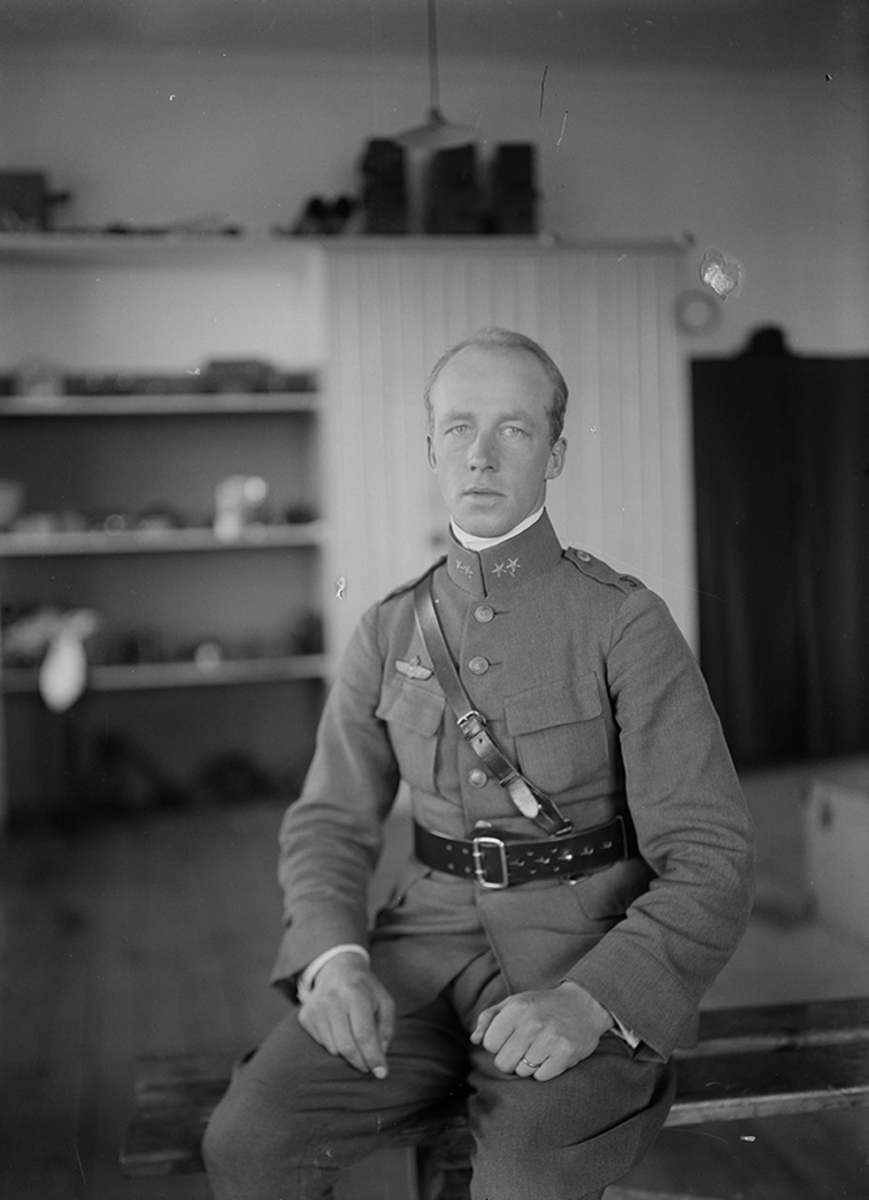 Porträttfotografi av militären E.A. Eriksson, kompaniofficer på F 3 Östgöta flygflottilj.