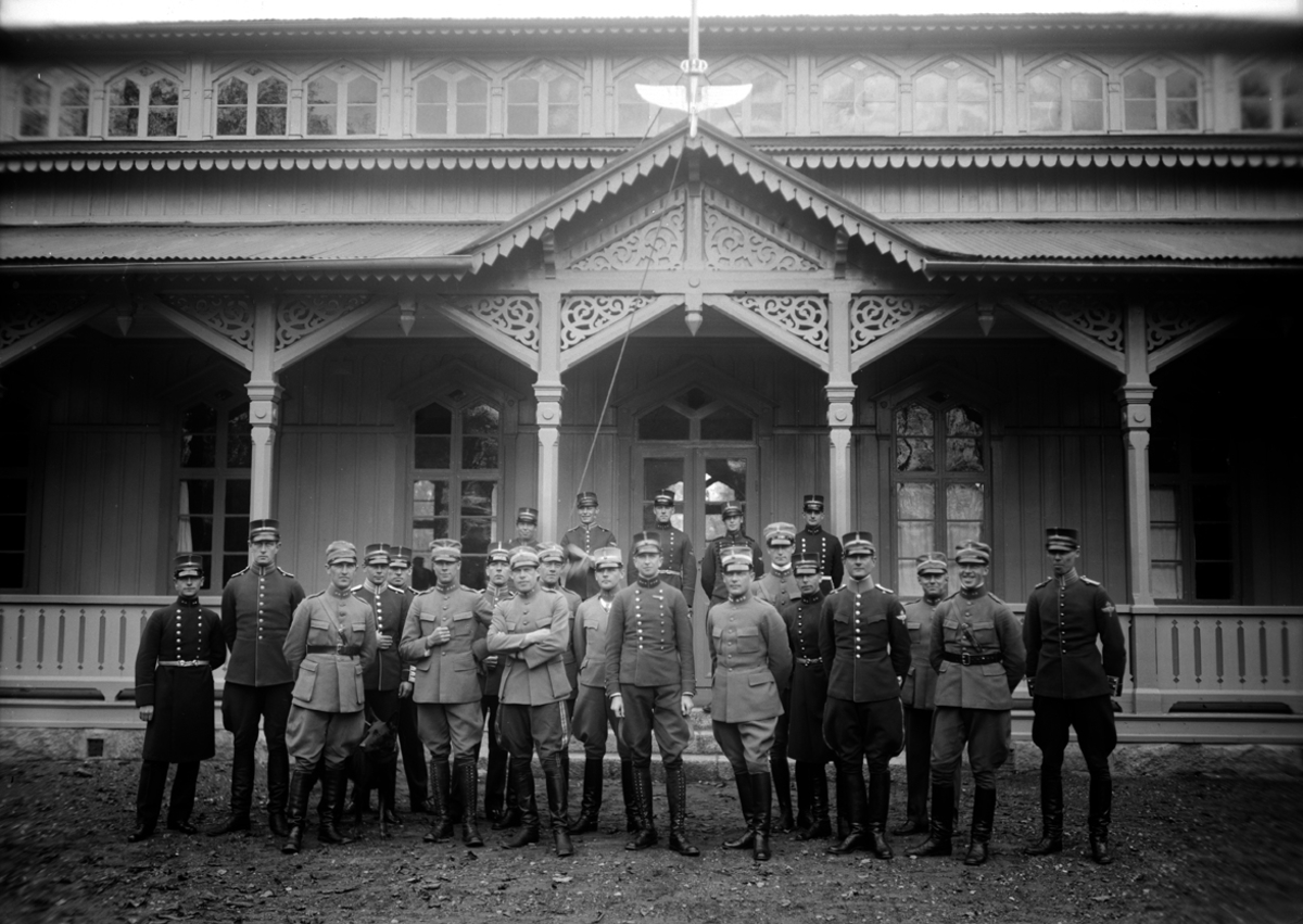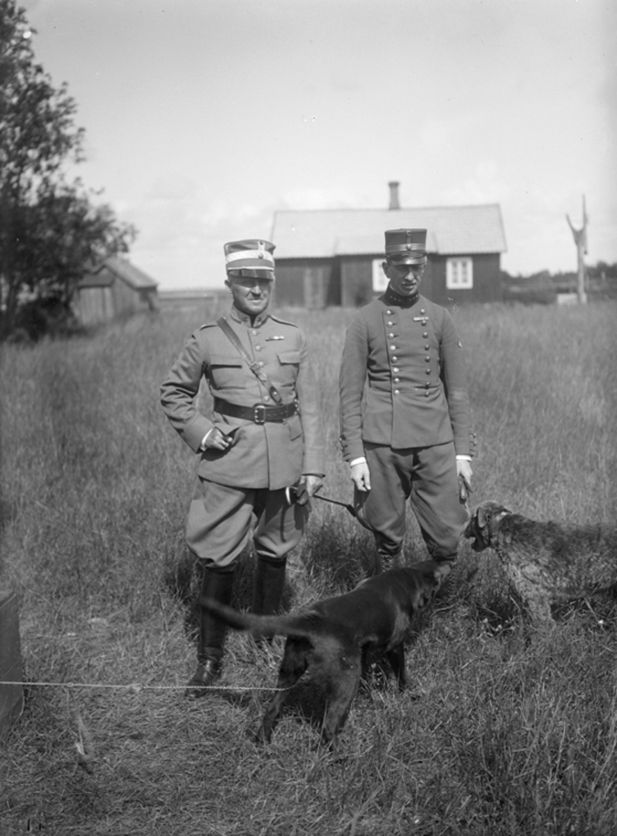 Porträttfotografi av militären E. J. G:son Östlund, kompaniofficer på F 3 Östgöta flygflottilj.
