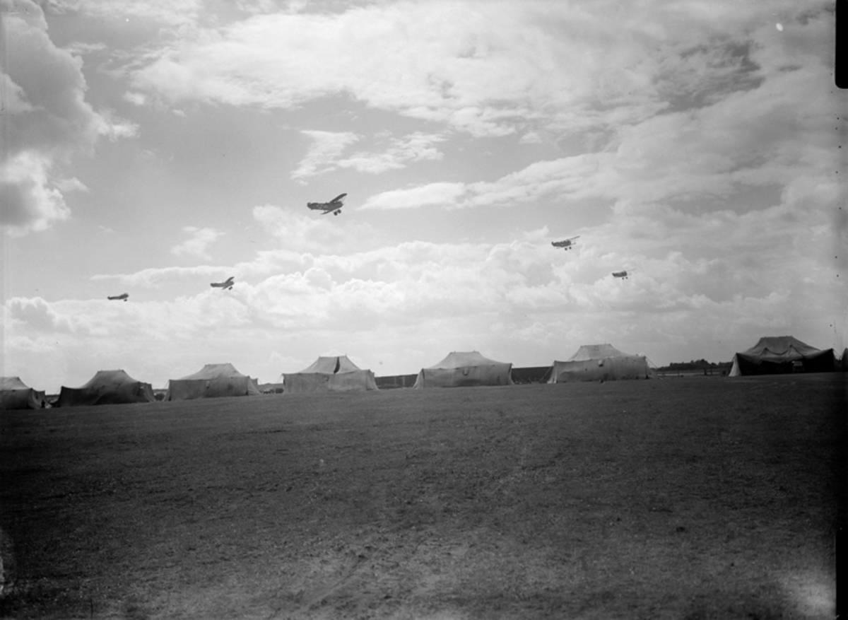 Flygstationen i Östersund. Flertal flygplan Phönix E.1 framför tälthangarer.