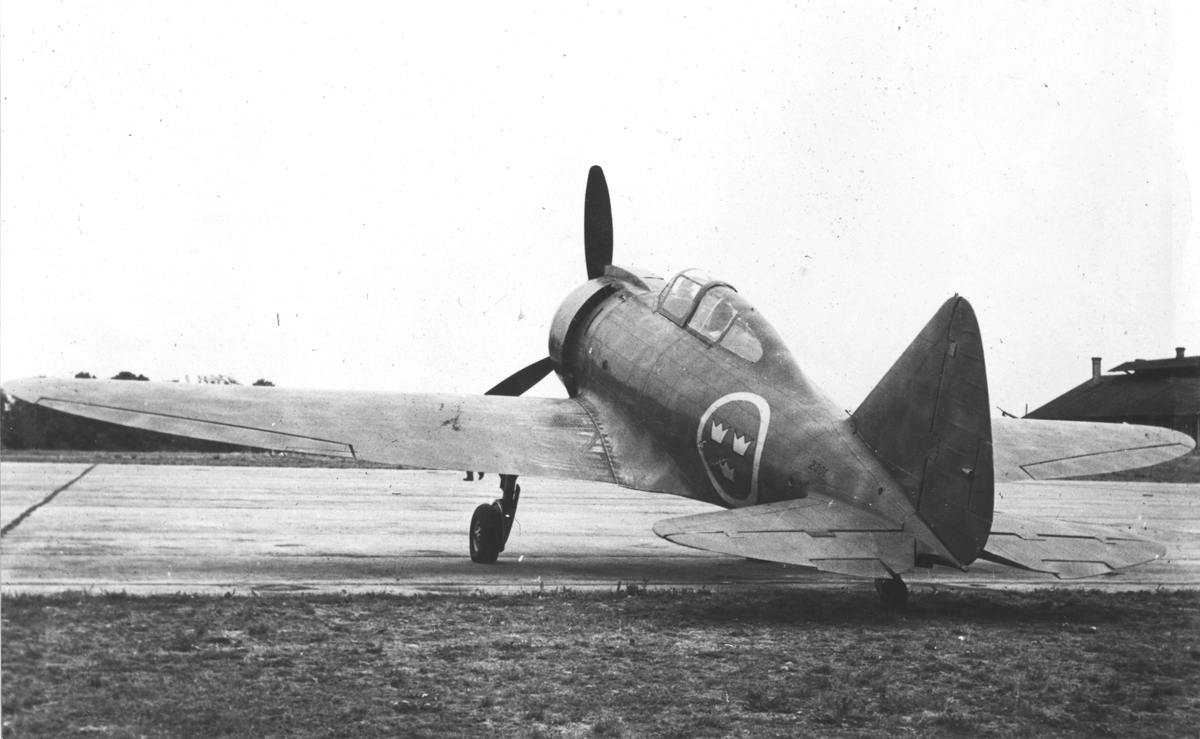 Haveri av flygplan S 16 på F 3 Östgöta flygflottilj, 1941. Flygplanet har kört in ett träd.
